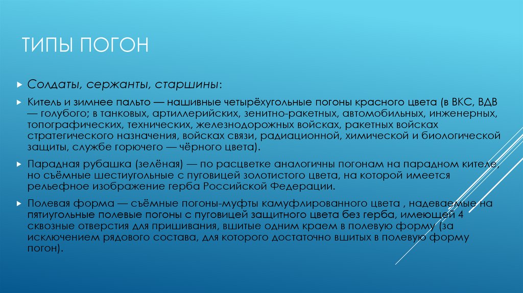 ТИПЫ ПОГОНСолдаты, сержанты, старшины: