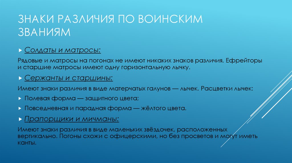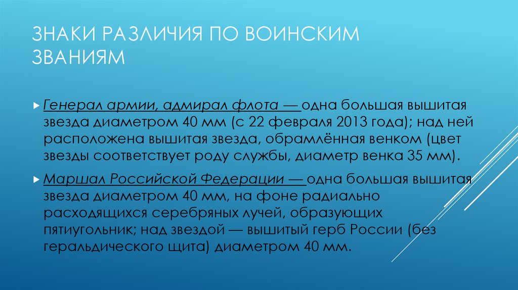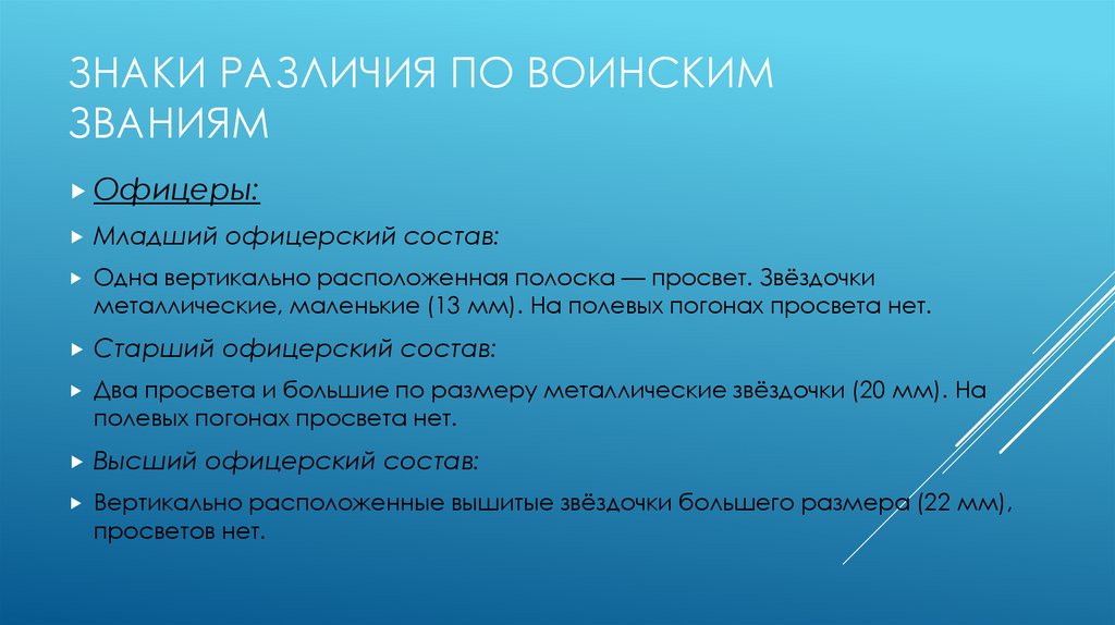 ЗНАКИ РАЗЛИЧИЯ ПО ВОИНСКИМЗВАНИЯМ