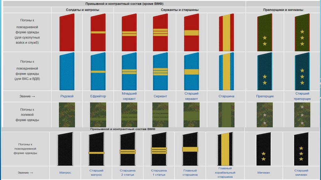 исключением рядового состава, для которого достаточно вшитых в полевую форму