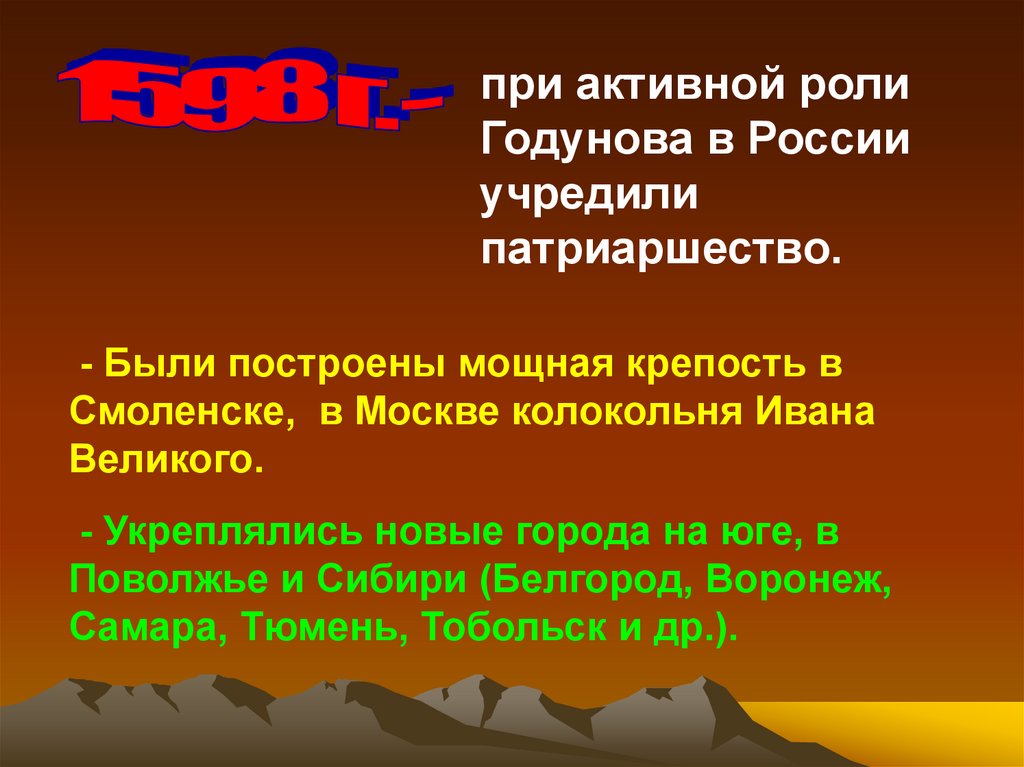 - Укреплялись новые города на юге, в