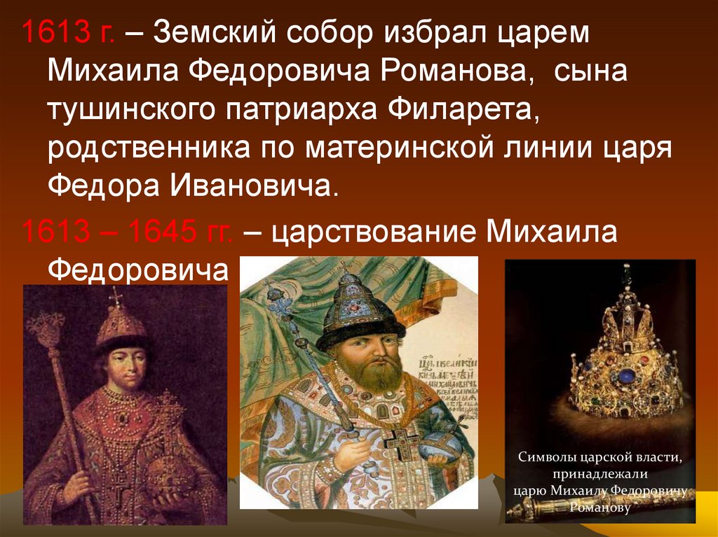 1613 – 1645 гг. – царствование Михаила