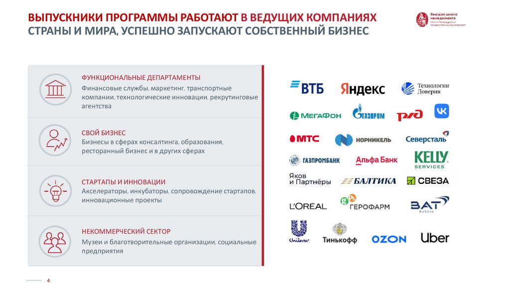 ВЫПУСКНИКИ ПРОГРАММЫ РАБОТАЮТ В ВЕДУЩИХ КОМПАНИЯХСТРАНЫ И МИРА, УСПЕШНО ЗАПУСКАЮТ СОБСТВЕННЫЙ БИЗНЕС