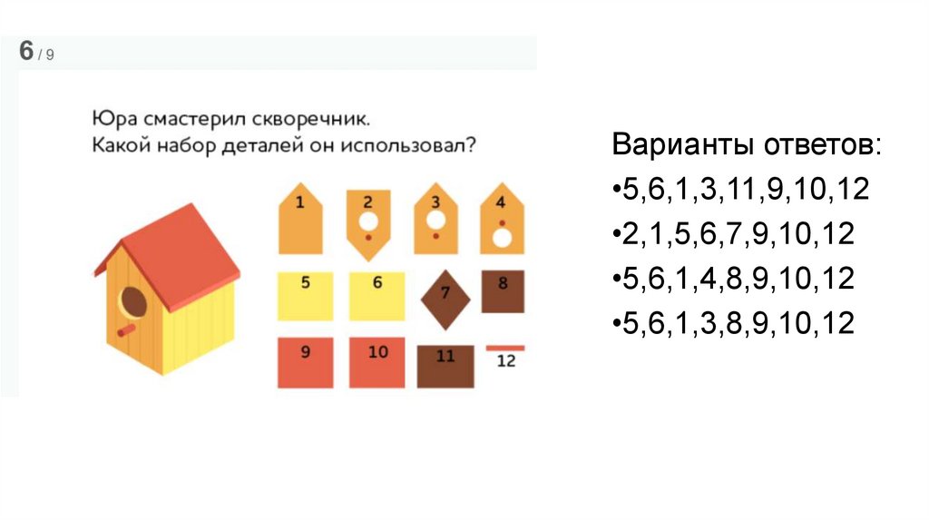 Варианты ответов:•5,6,1,3,11,9,10,12