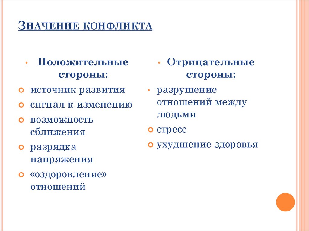ЗНАЧЕНИЕ КОНФЛИКТАПоложительные