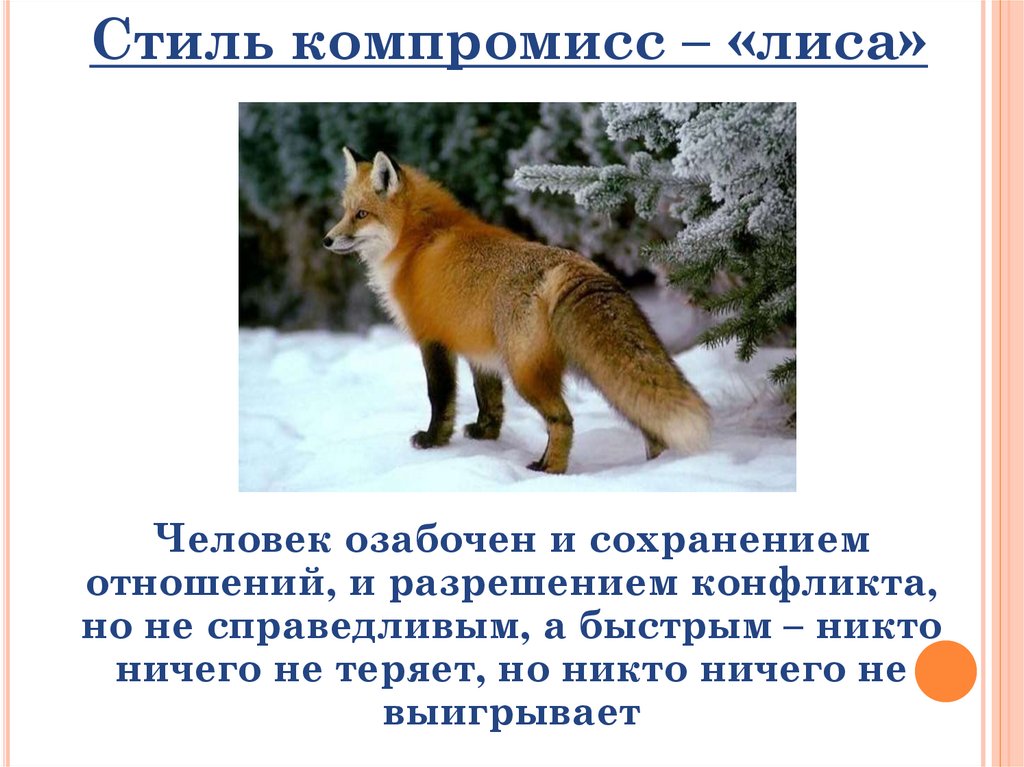 Стиль компромисс – «лиса»Человек озабочен и сохранением