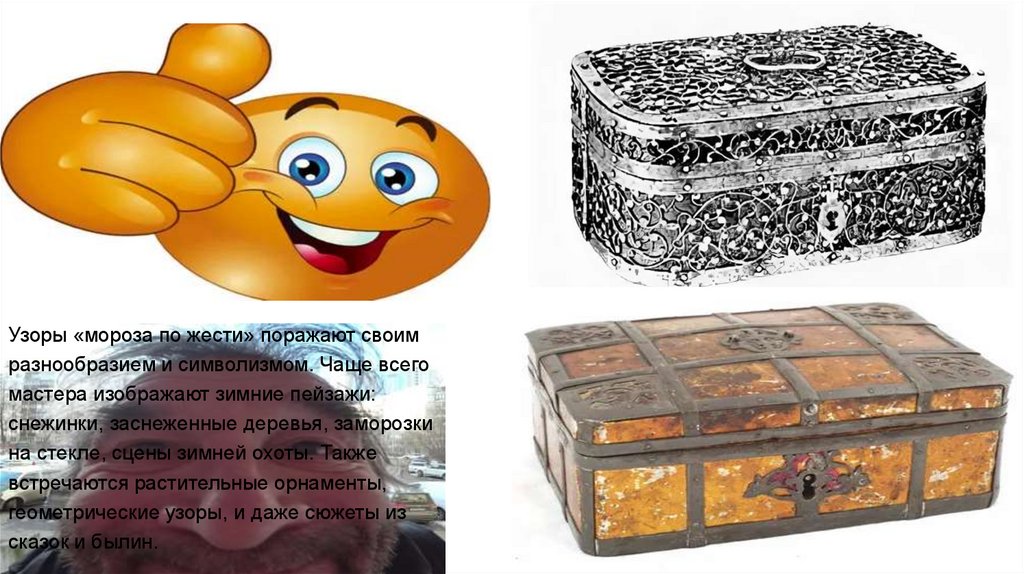К сожалению, промысел «мороз по жести»сейчас утрачен. Но вы можете видеть эти