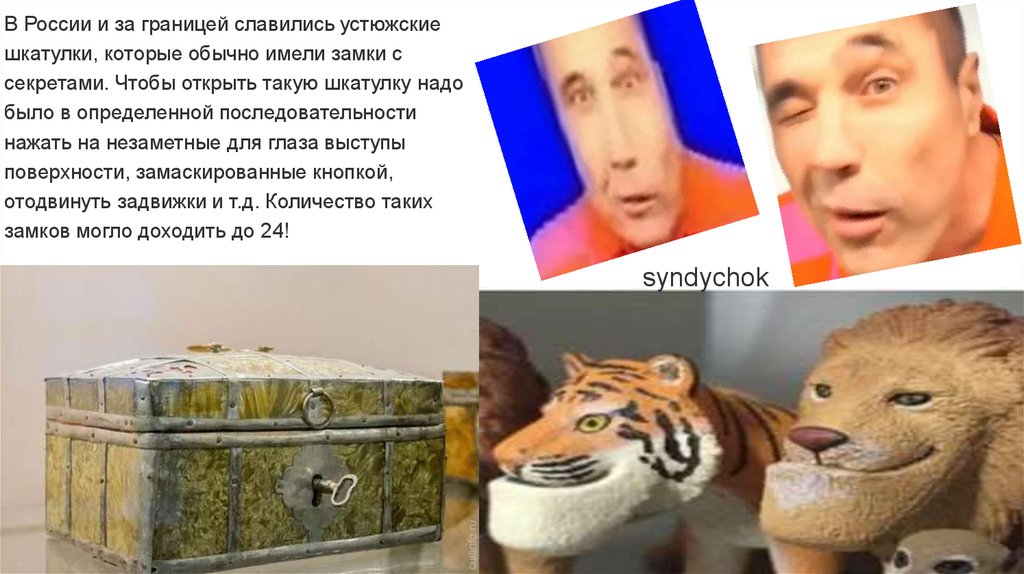 В России и за границей славились устюжскиешкатулки, которые обычно имели замки с