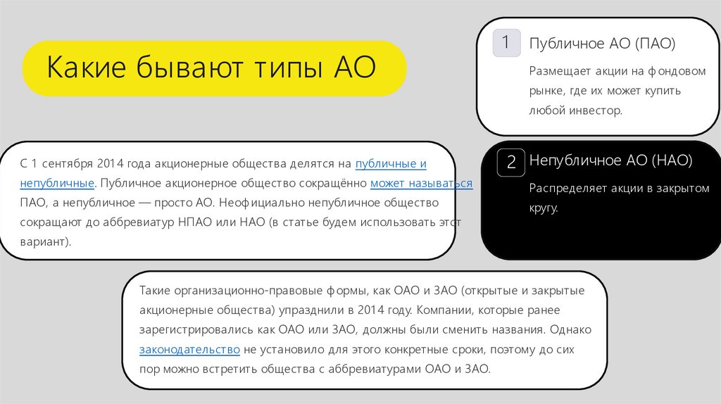 С 1 сентября 201 4 года акционерные общества делятся на публичные и