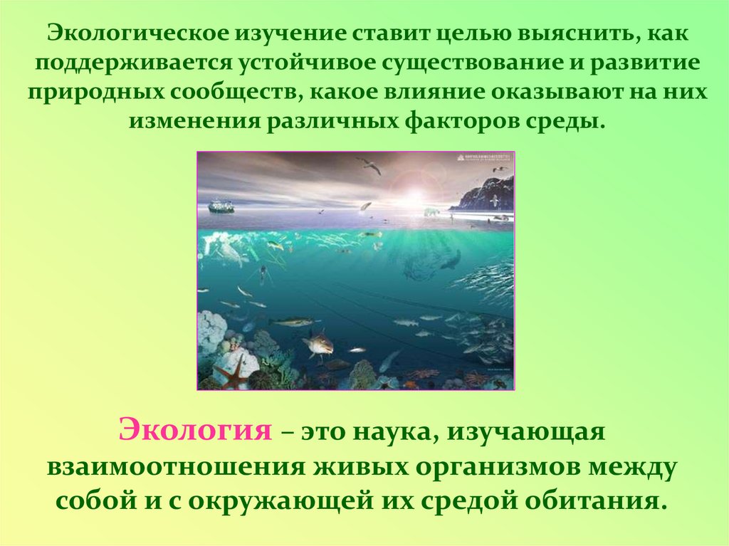 Экологическое изучение ставит целью выяснить, какподдерживается устойчивое существование и развитие