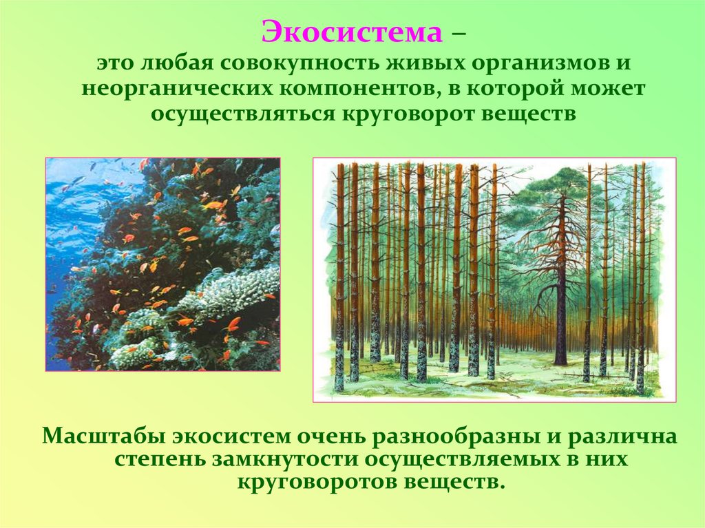 13. Экосистема – это любая совокупность живых организмов и неорганических компонентов, в которой может осуществляться круговорот
