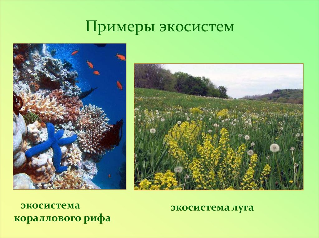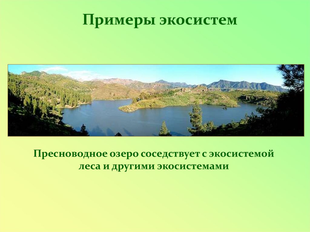 Примеры экосистемПресноводное озеро соседствует с экосистемой