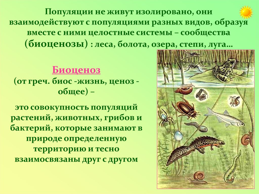 Популяции не живут изолировано, онивзаимодействуют с популяциями разных видов, образуя