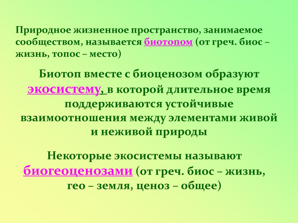 Природное жизненное пространство, занимаемоесообществом, называется биотопом (от греч. биос –
