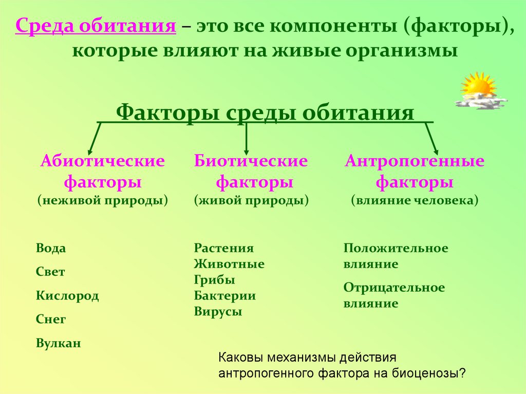 Среда обитания – это все компоненты (факторы),которые влияют на живые организмы