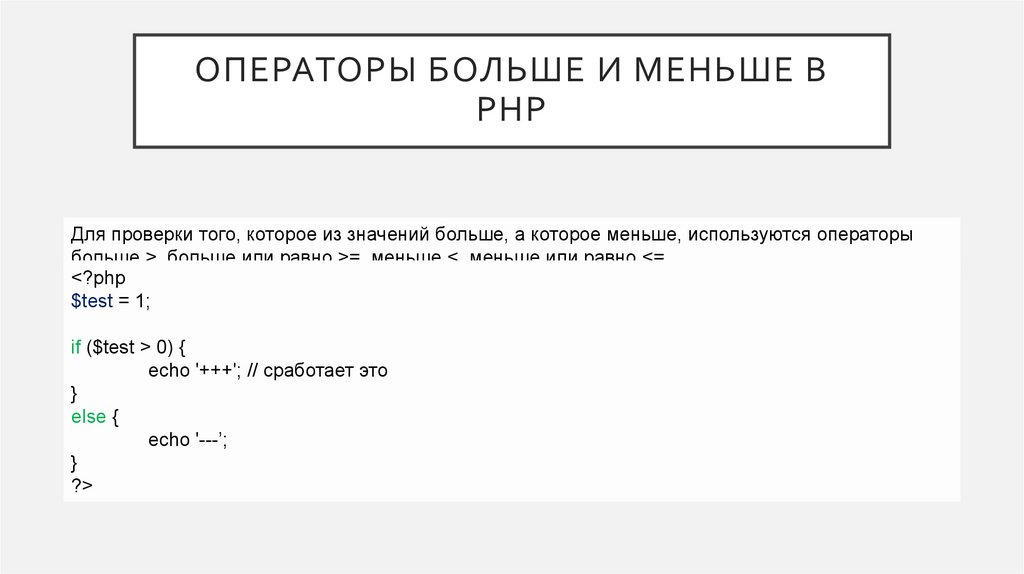 ОПЕРАТОРЫ БОЛЬШЕ И МЕНЬШЕ ВPHP