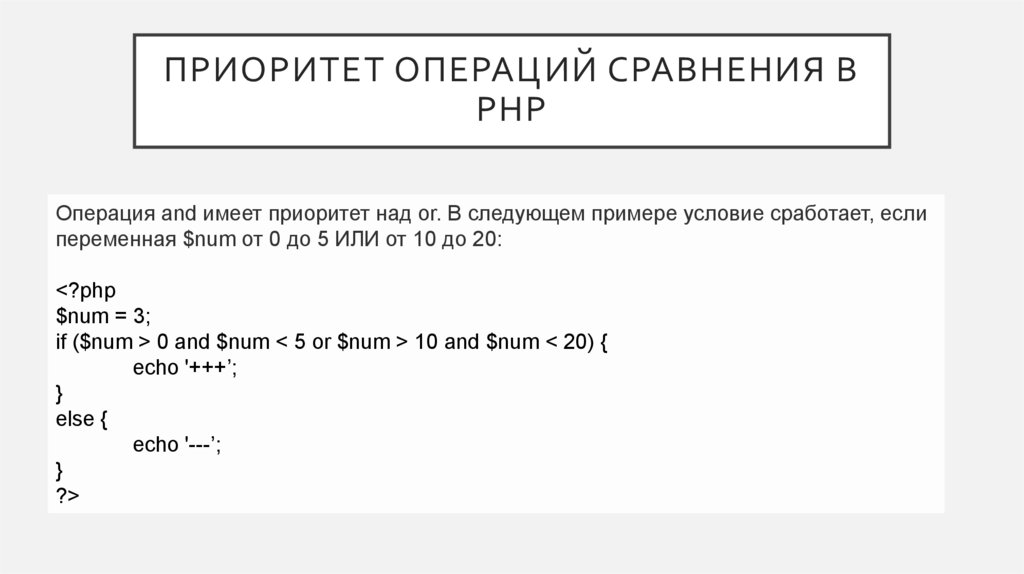 ПРИОРИТЕТ ОПЕРАЦИЙ СРАВНЕНИЯ ВPHP