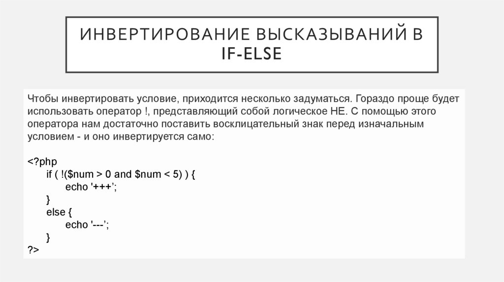 ИНВЕРТИРОВАНИЕ ВЫСКАЗЫВАНИЙ ВIF-ELSE