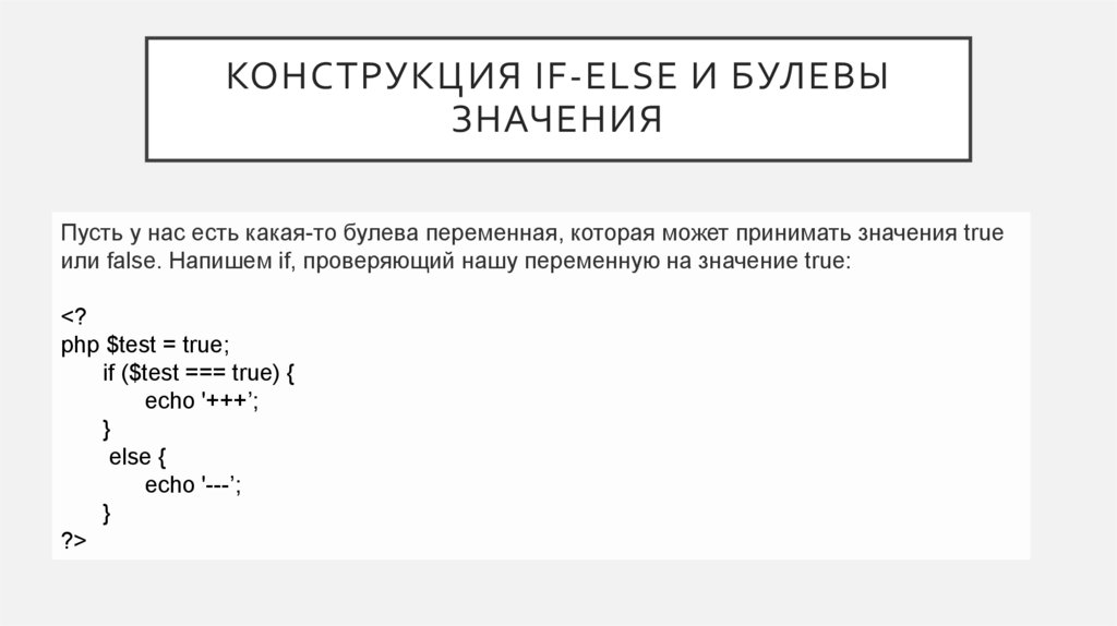 КОНСТРУКЦИЯ IF-ELSE И БУЛЕВЫЗНАЧЕНИЯ