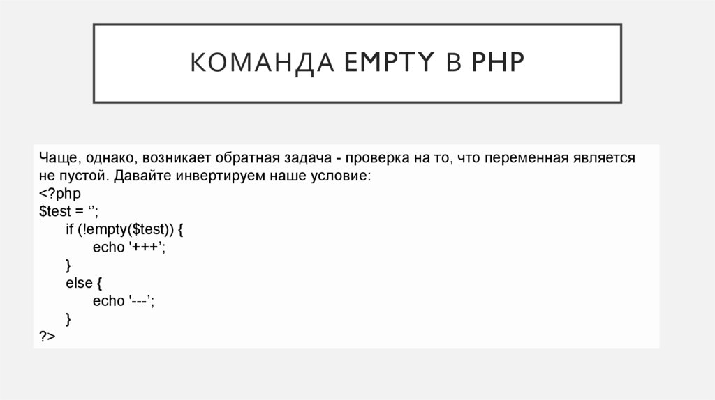 КОМАНДА EMPTY В PHPЧаще, однако, возникает обратная задача - проверка на то, что переменная является