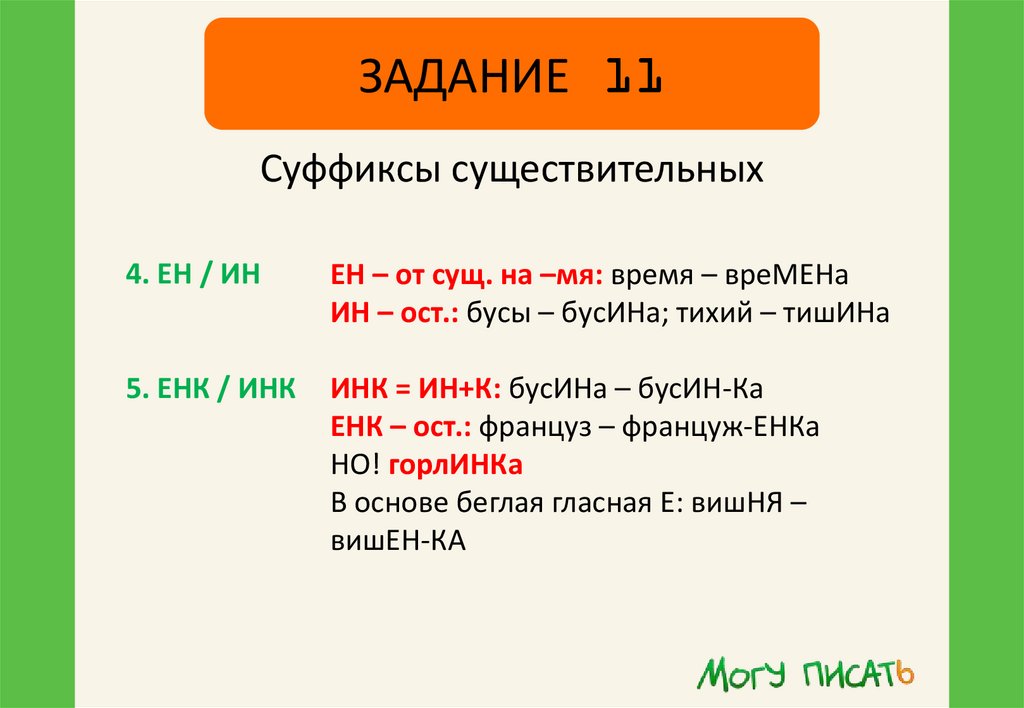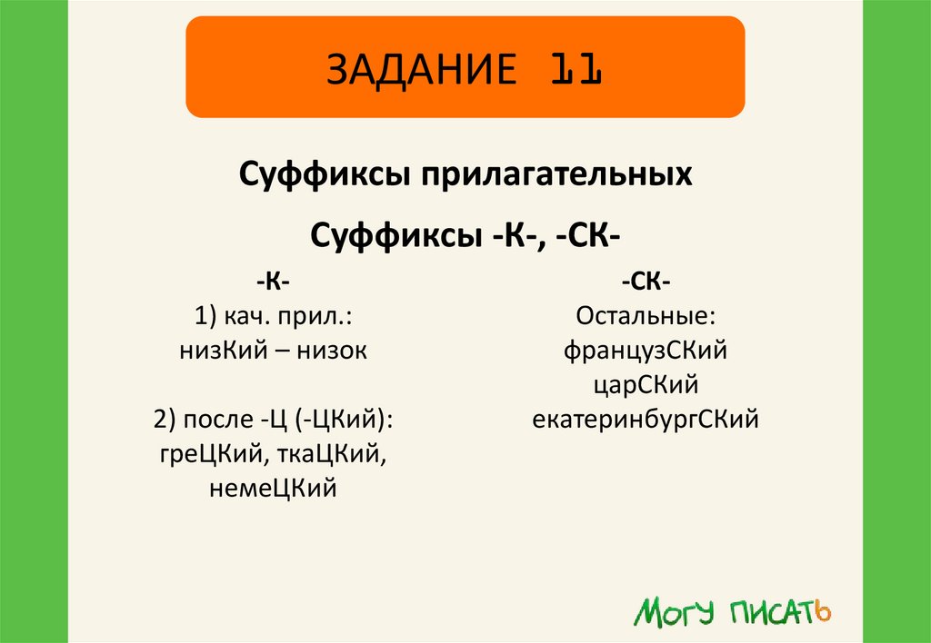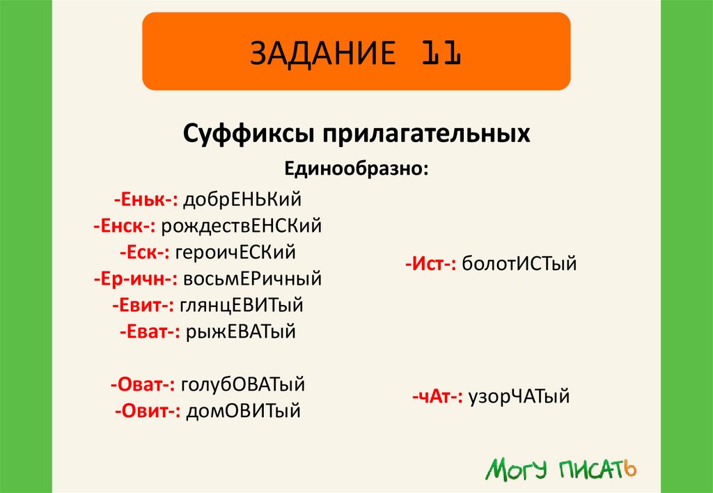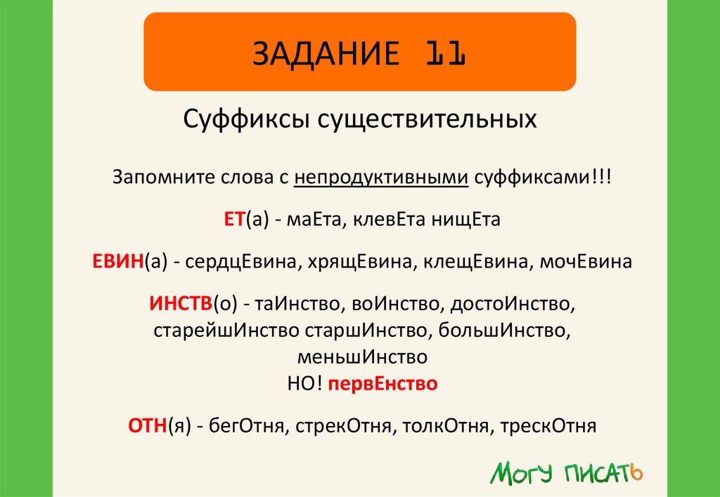 ЗАДАНИЕ 11ОРФОГРАММЫ В СУФФИКСАХ