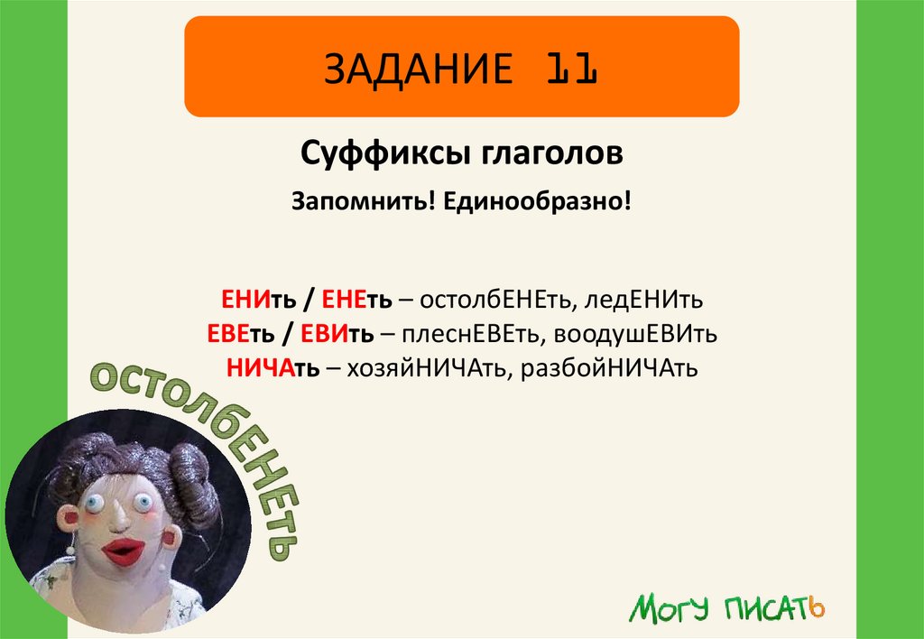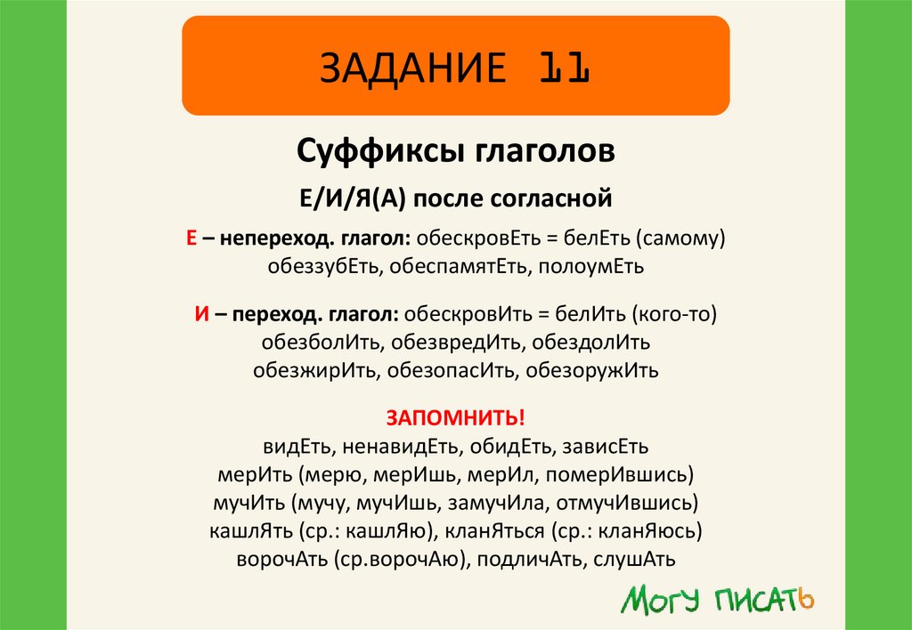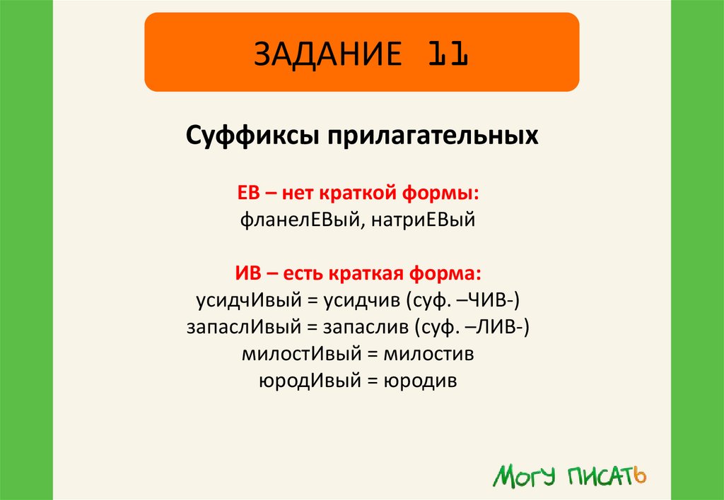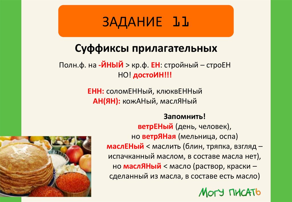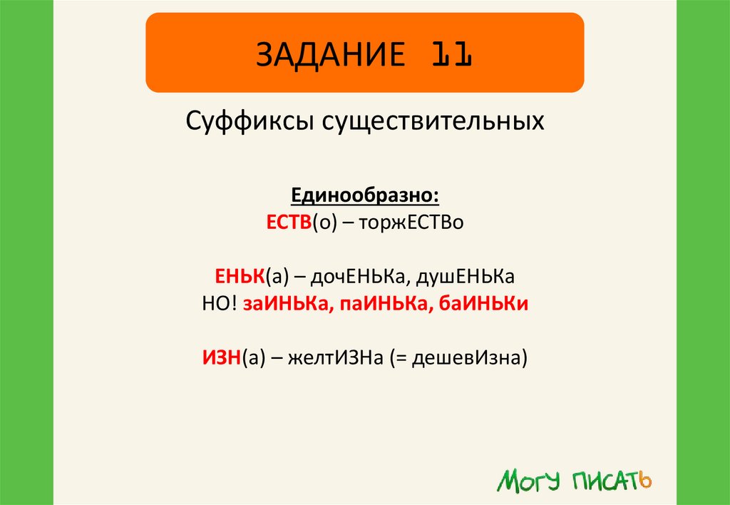 ЗАДАНИЕ 11ОРФОГРАММЫ В СУФФИКСАХ