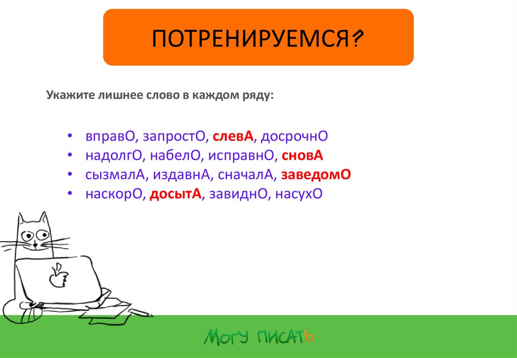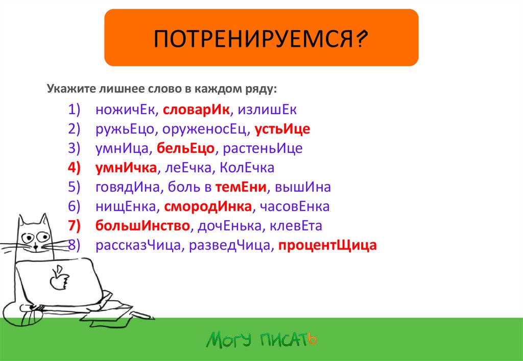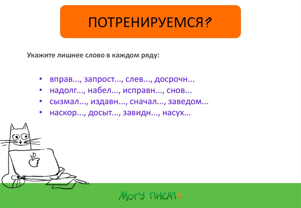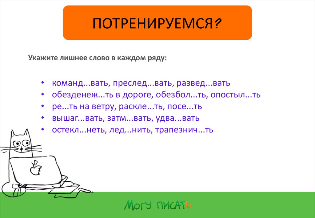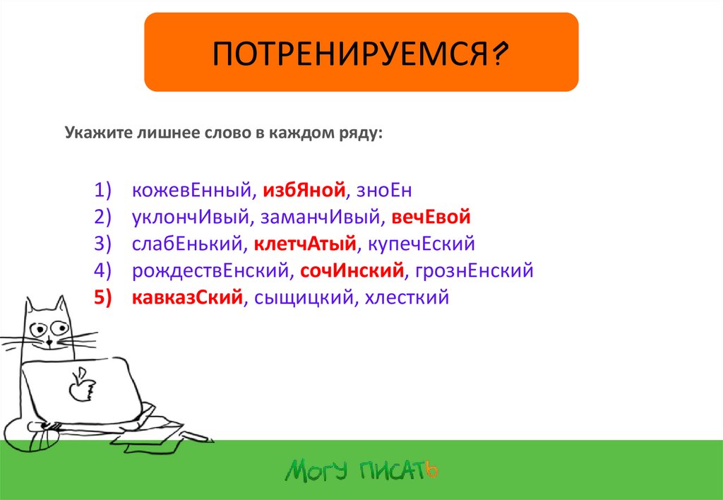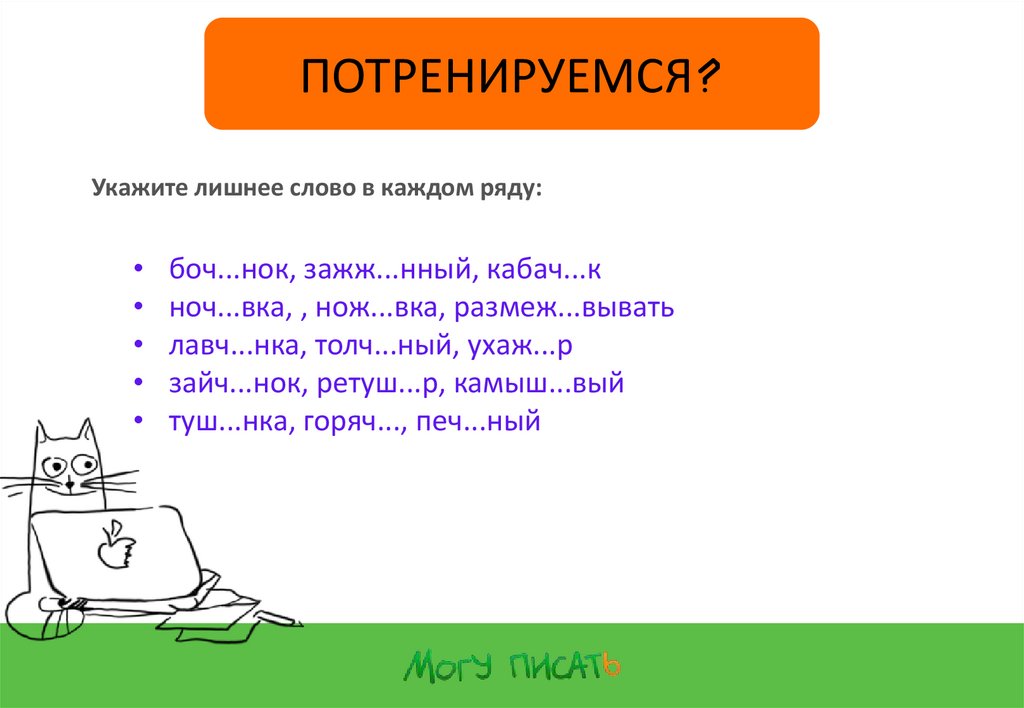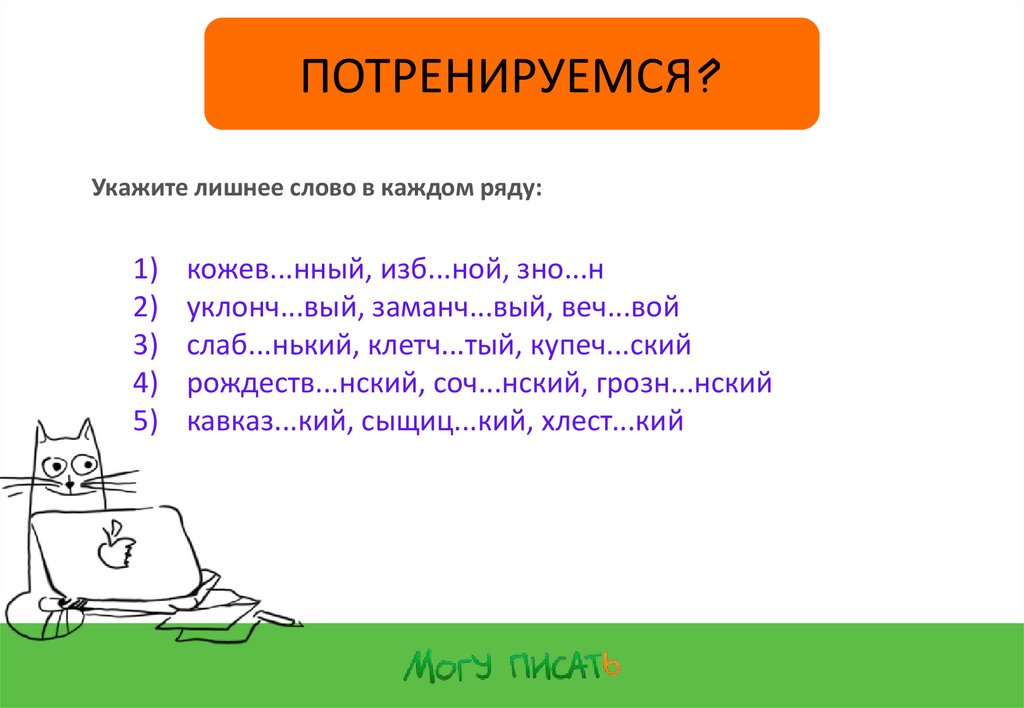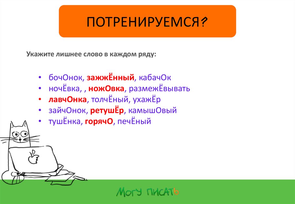ПОТРЕНИРУЕМСЯ?Укажите лишнее слово в каждом ряду: