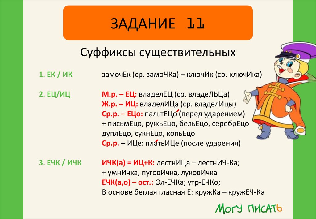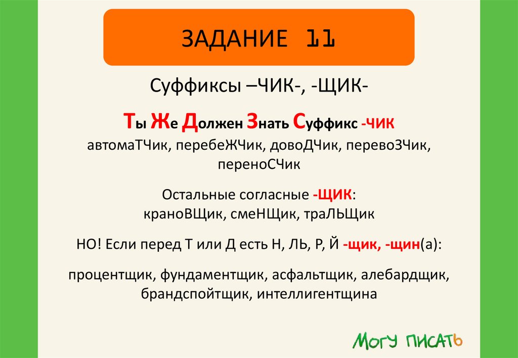 ЗАДАНИЕ 11Суффиксы –ЧИК-, -ЩИК-