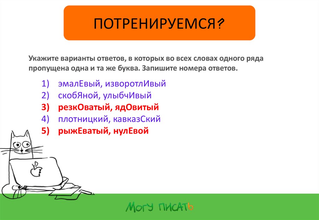 Правописание суффиксов разных частей речи. Задание ЕГЭ