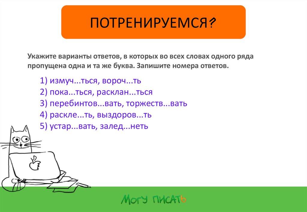 ПОТРЕНИРУЕМСЯ?Укажите варианты ответов, в которых во всех словах одного ряда