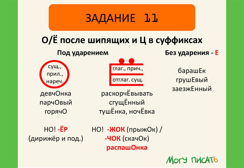 ЗАДАНИЕ 11О/Ё после шипящих и Ц в суффиксах