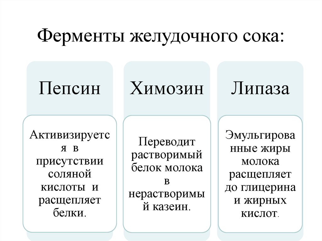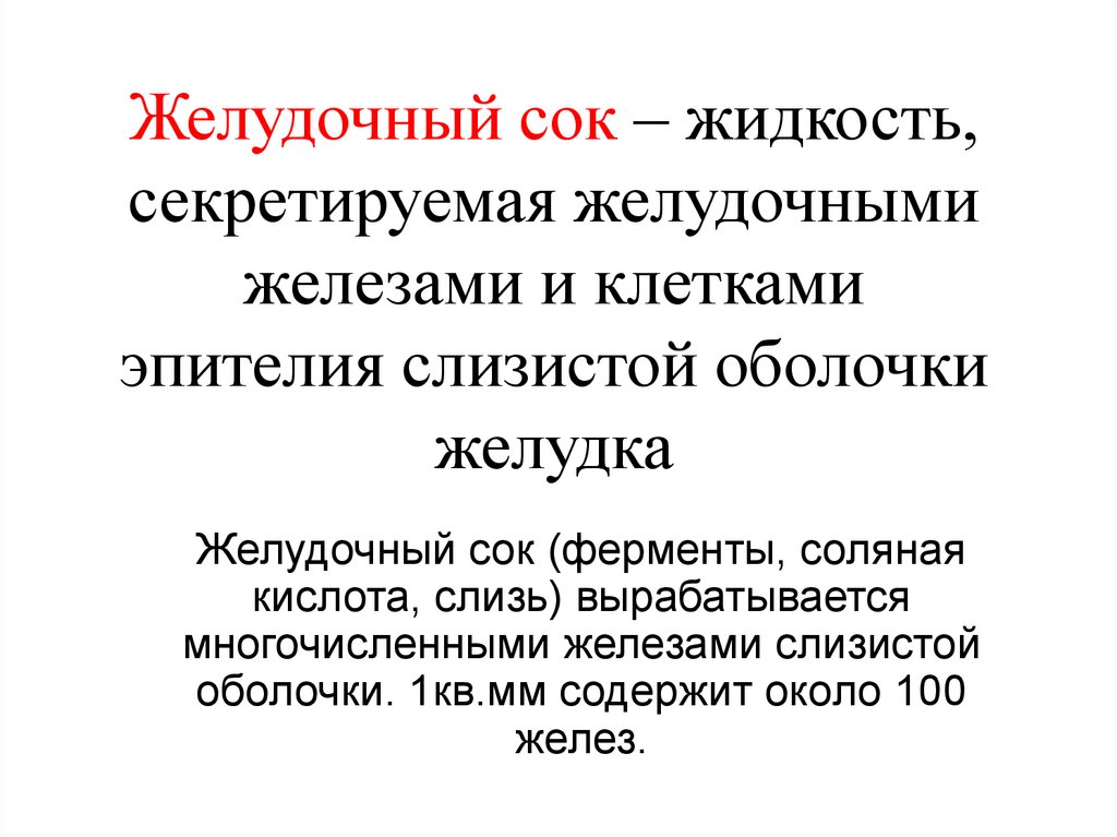 Желудочный сок (ферменты, солянаякислота, слизь) вырабатывается