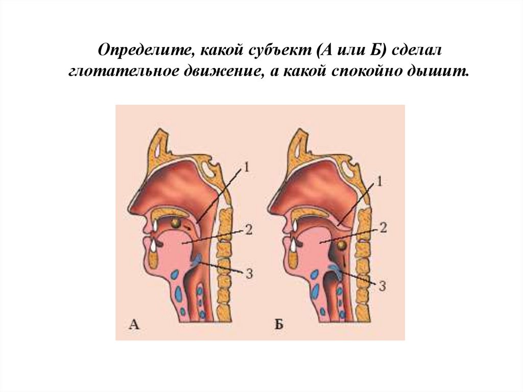 Определите, какой субъект (А или Б) сделалглотательное движение, а какой спокойно дышит.