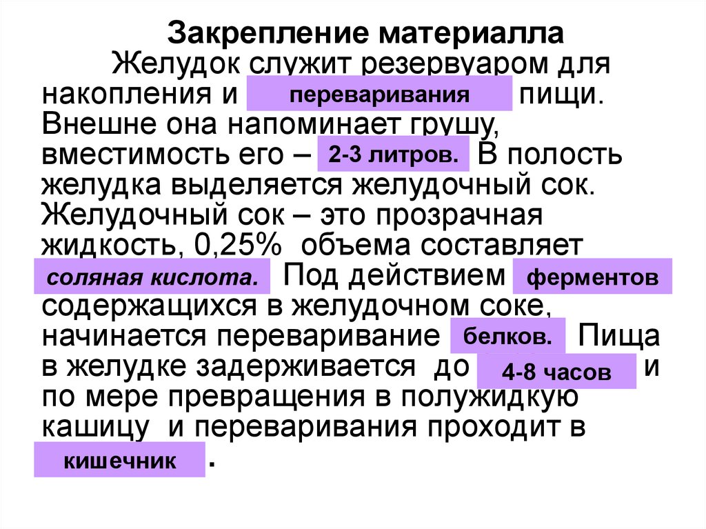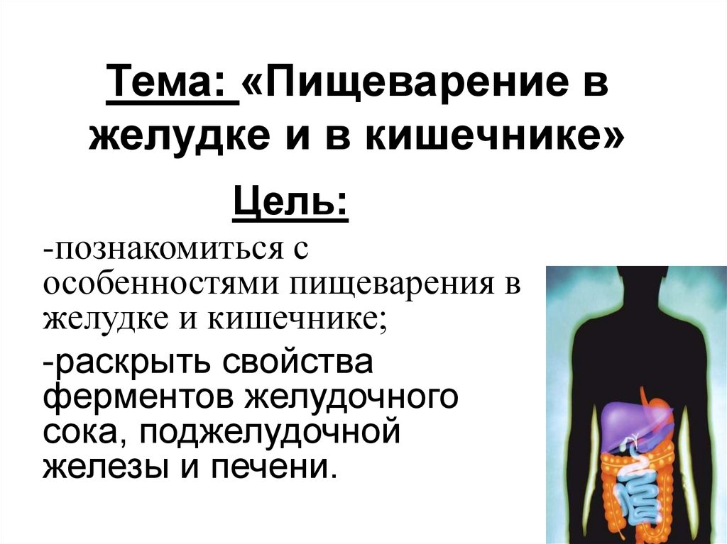 6. Тема: «Пищеварение в желудке и в кишечнике»