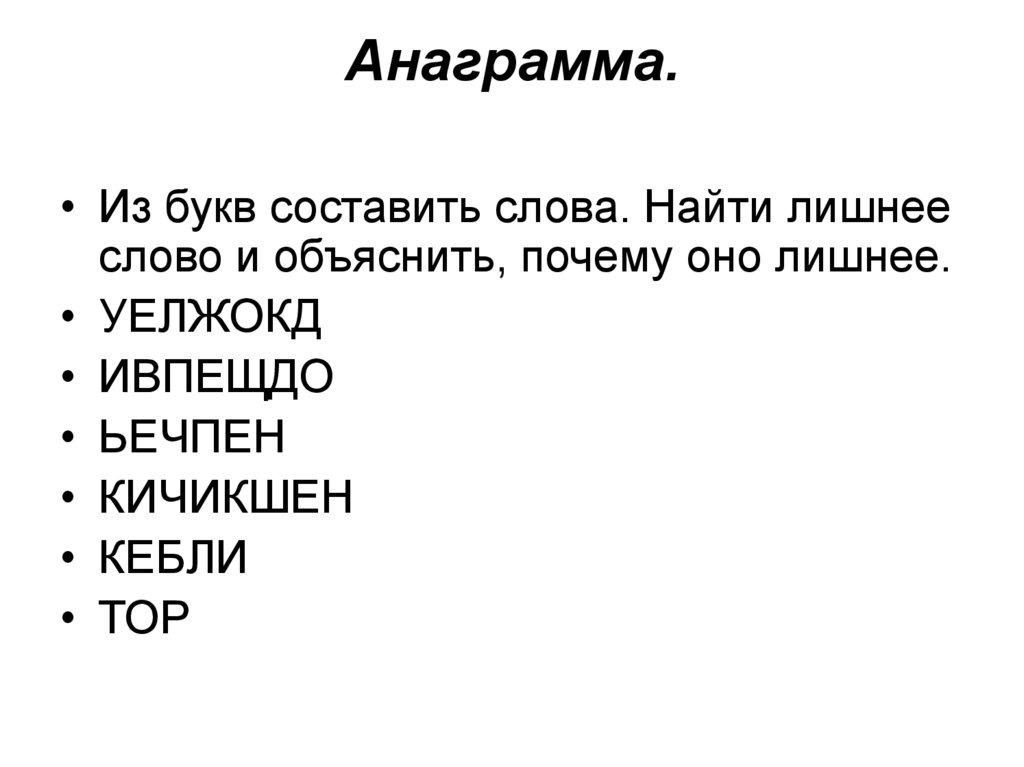 • Из букв составить слова. Найти лишнееслово и объяснить, почему оно лишнее.