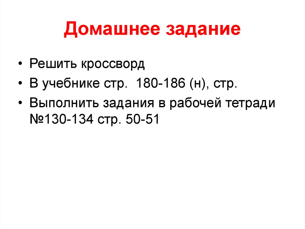 • Решить кроссворд• В учебнике стр. 180-186 (н), стр.