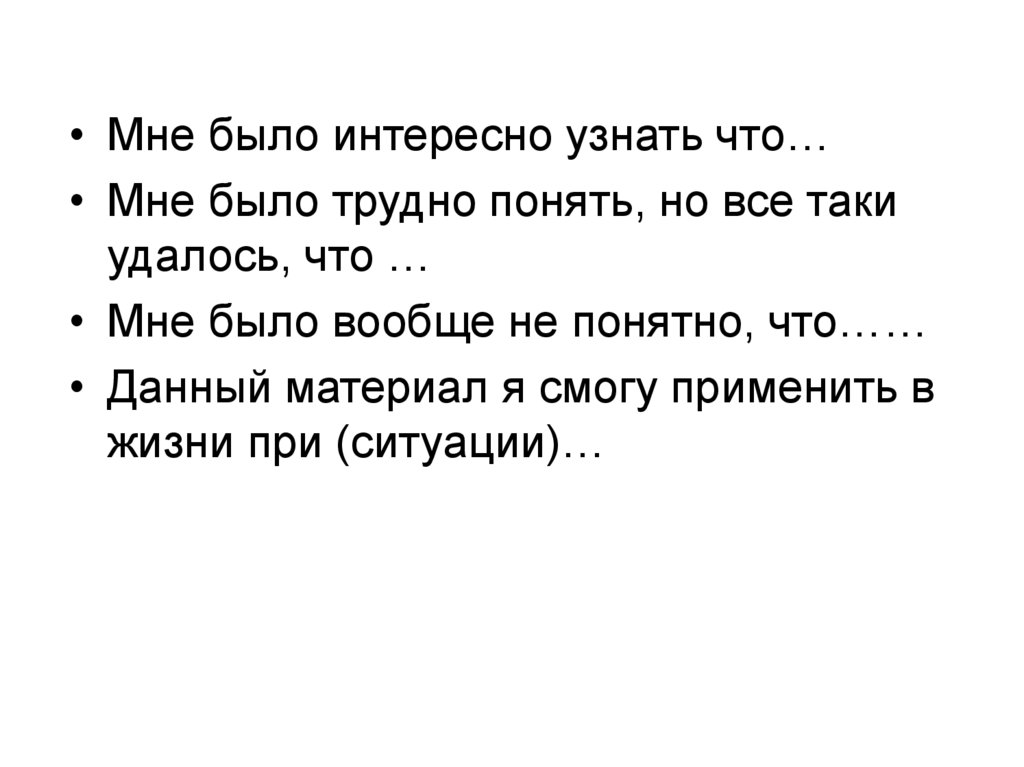 • Мне было интересно узнать что…• Мне было трудно понять, но все таки