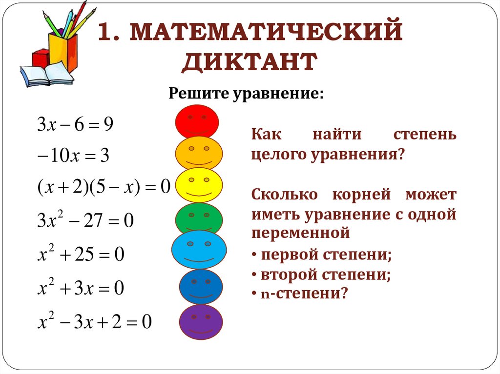 2. 1. МАТЕМАТИЧЕСКИЙ ДИКТАНТ