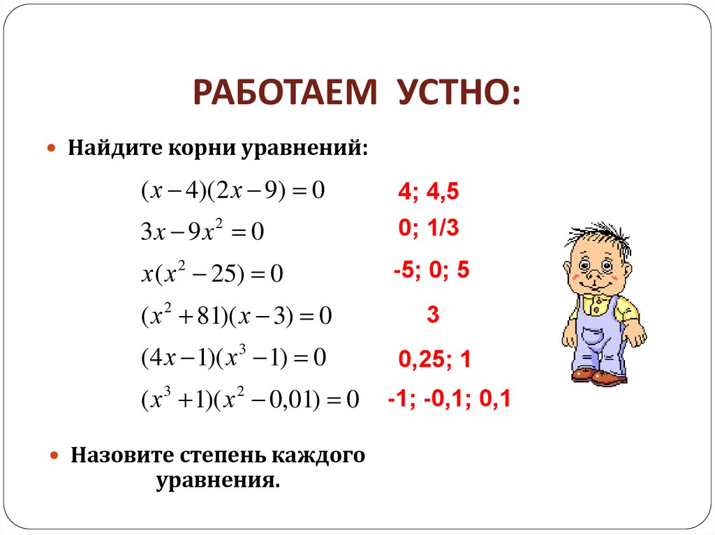 5. Рассмотрим решение уравнений высших степеней, используя разложение на множители.