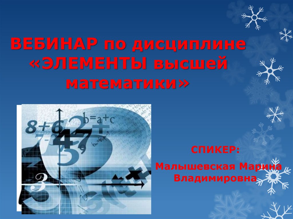 ВЕБИНАР по дисциплине«ЭЛЕМЕНТЫ высшей