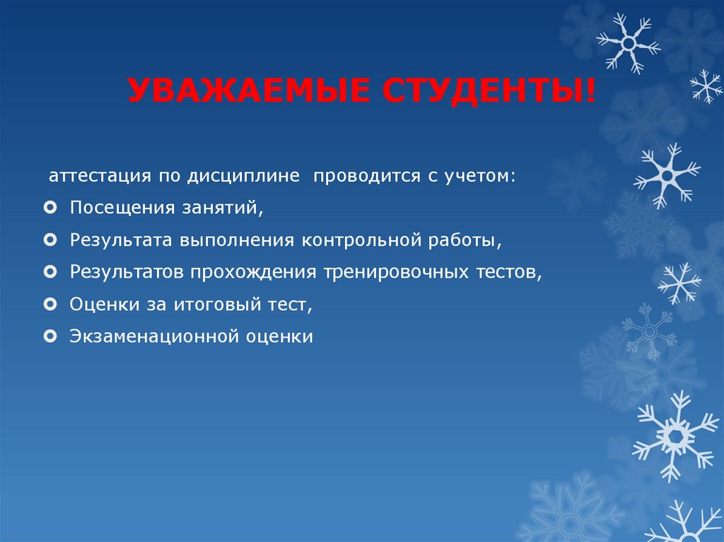 УВАЖАЕМЫЕ СТУДЕНТЫ!аттестация по дисциплине проводится с учетом: