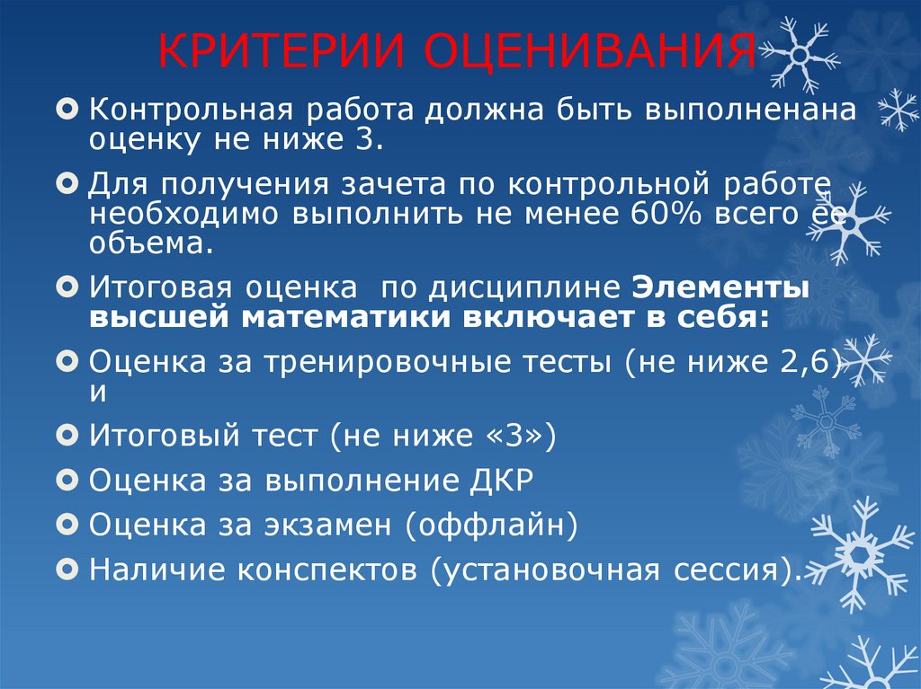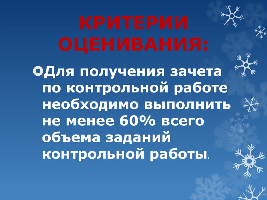 КРИТЕРИИ ОЦЕНИВАНИЯКонтрольная работа должна быть выполненана