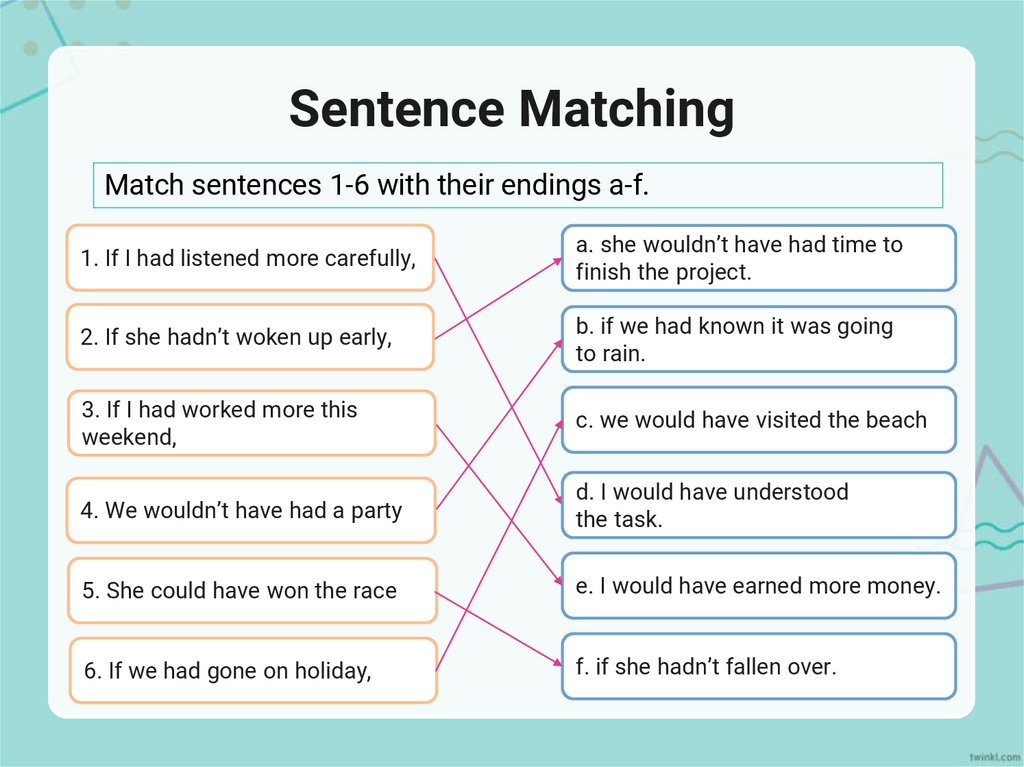 Sentence MatchingMatch sentences 1-6 with their endings a-f.