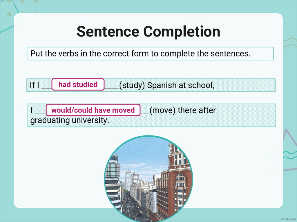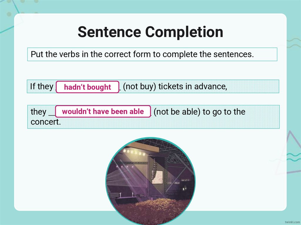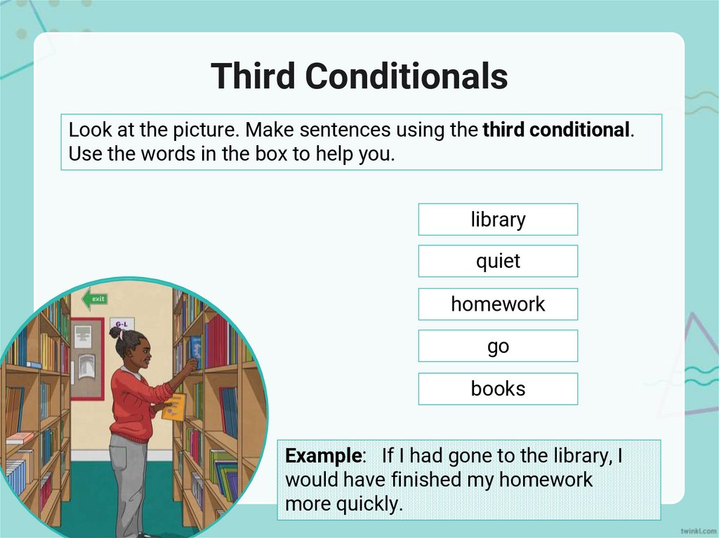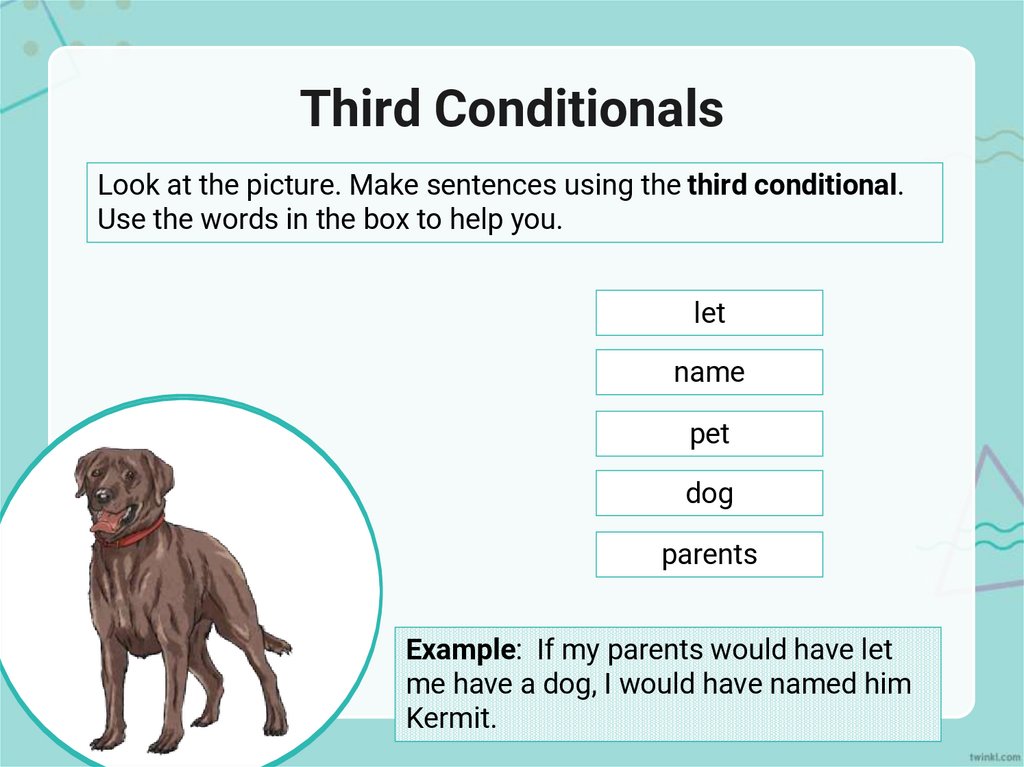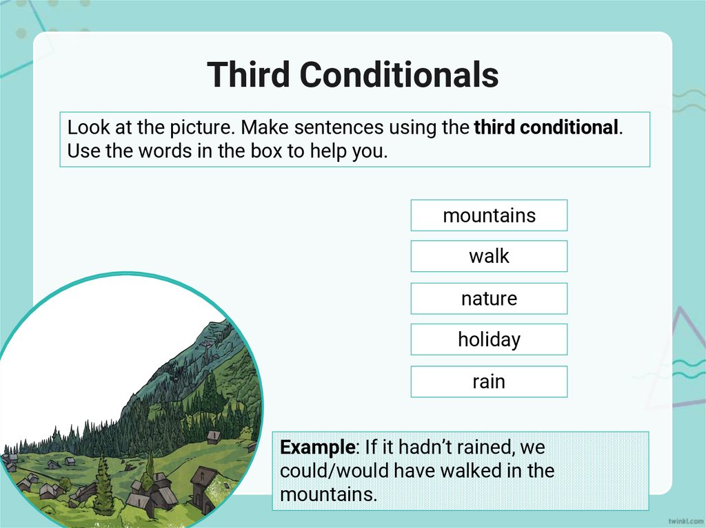 Third ConditionalsLook at the picture. Make sentences using the third conditional.