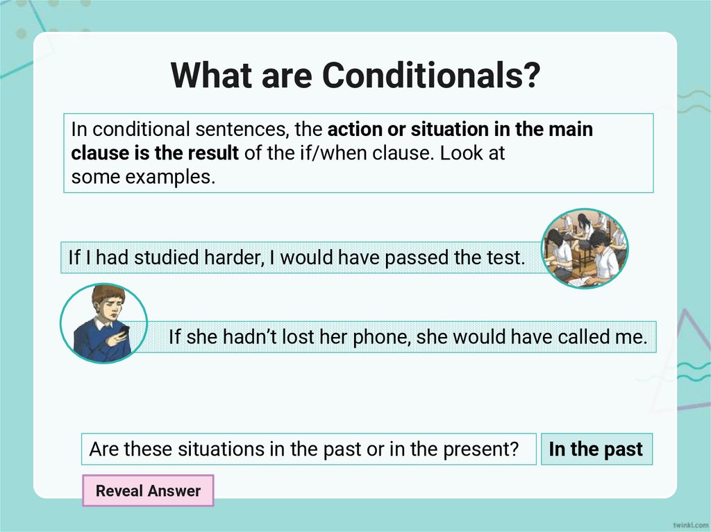 What are Conditionals?In conditional sentences, the action or situation in the main