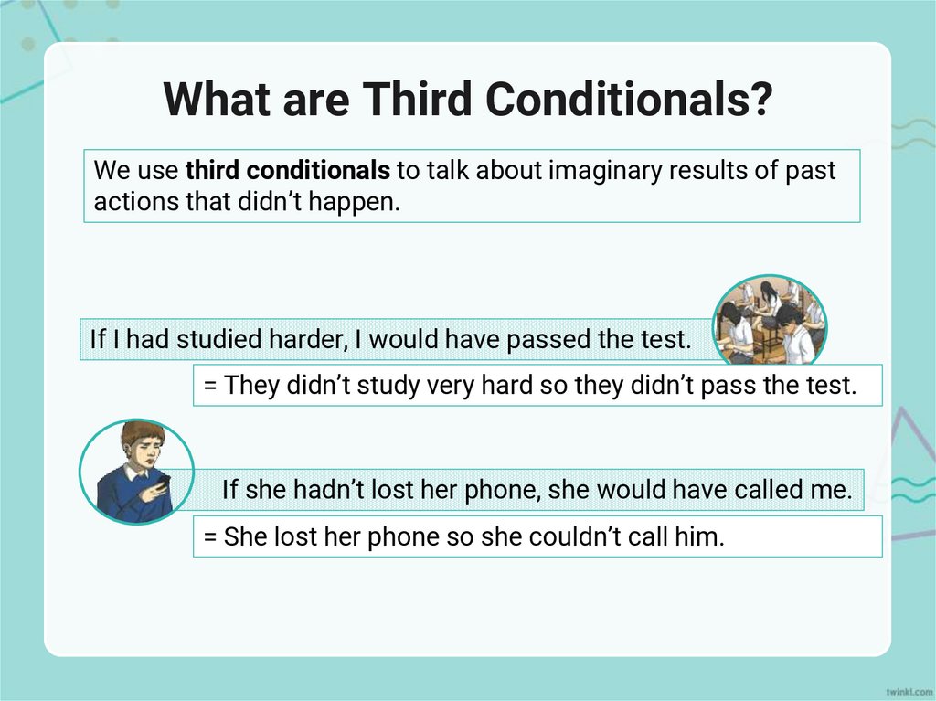 What are Third Conditionals?We use third conditionals to talk about imaginary results of past
