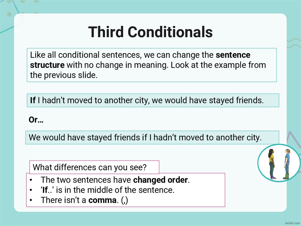 Third ConditionalsLike all conditional sentences, we can change the sentence