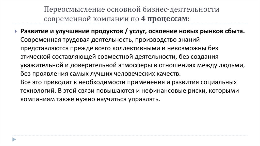 Переосмысление основной бизнес-деятельностисовременной компании по 4 процессам: