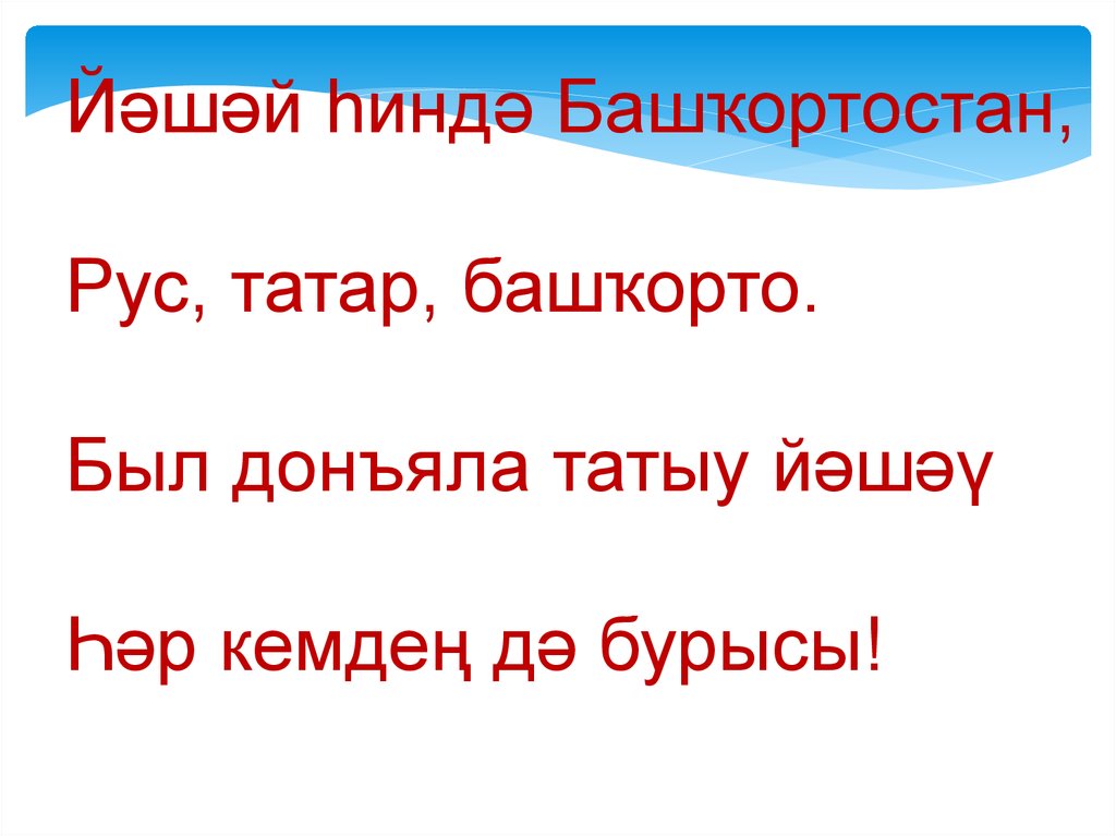 Йәшәй һиндә Башҡортостан,Рус, татар, башҡорто.