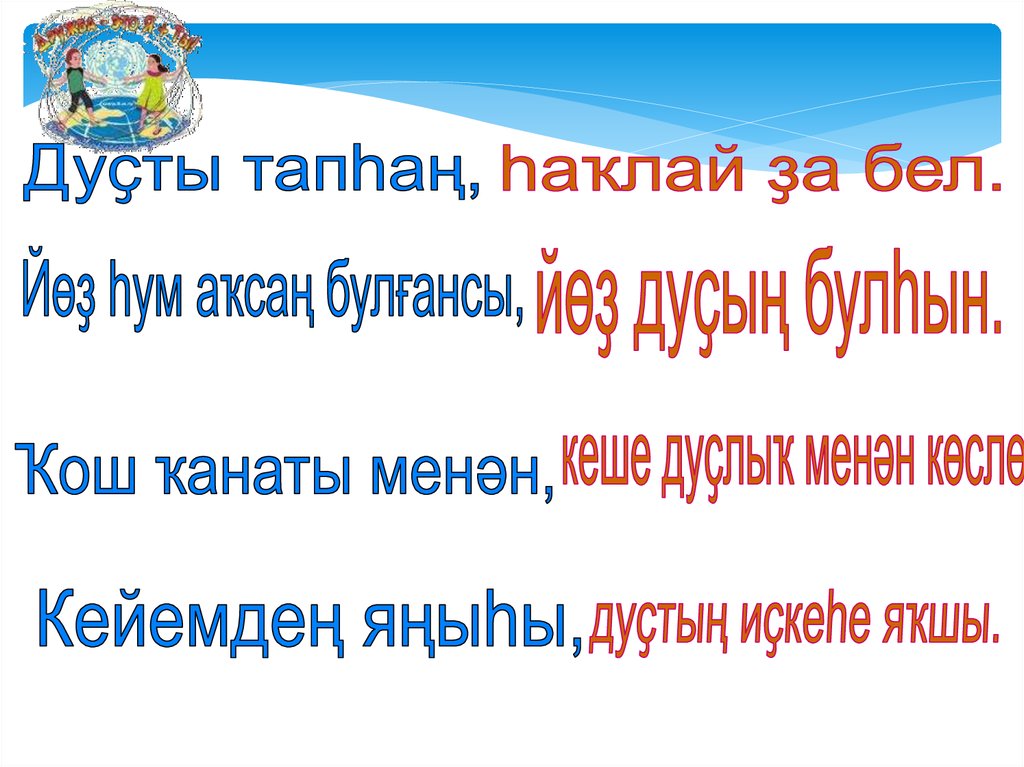 Балалар, әйҙәгеҙ дуҫйәшәйек!