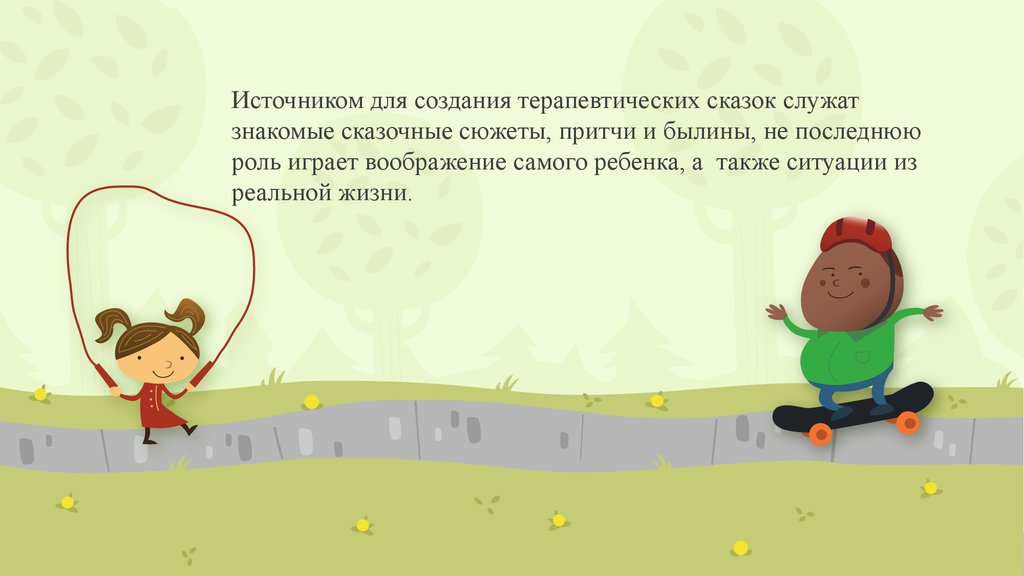 Источником для создания терапевтических сказок служатзнакомые сказочные сюжеты, притчи и былины, не последнюю